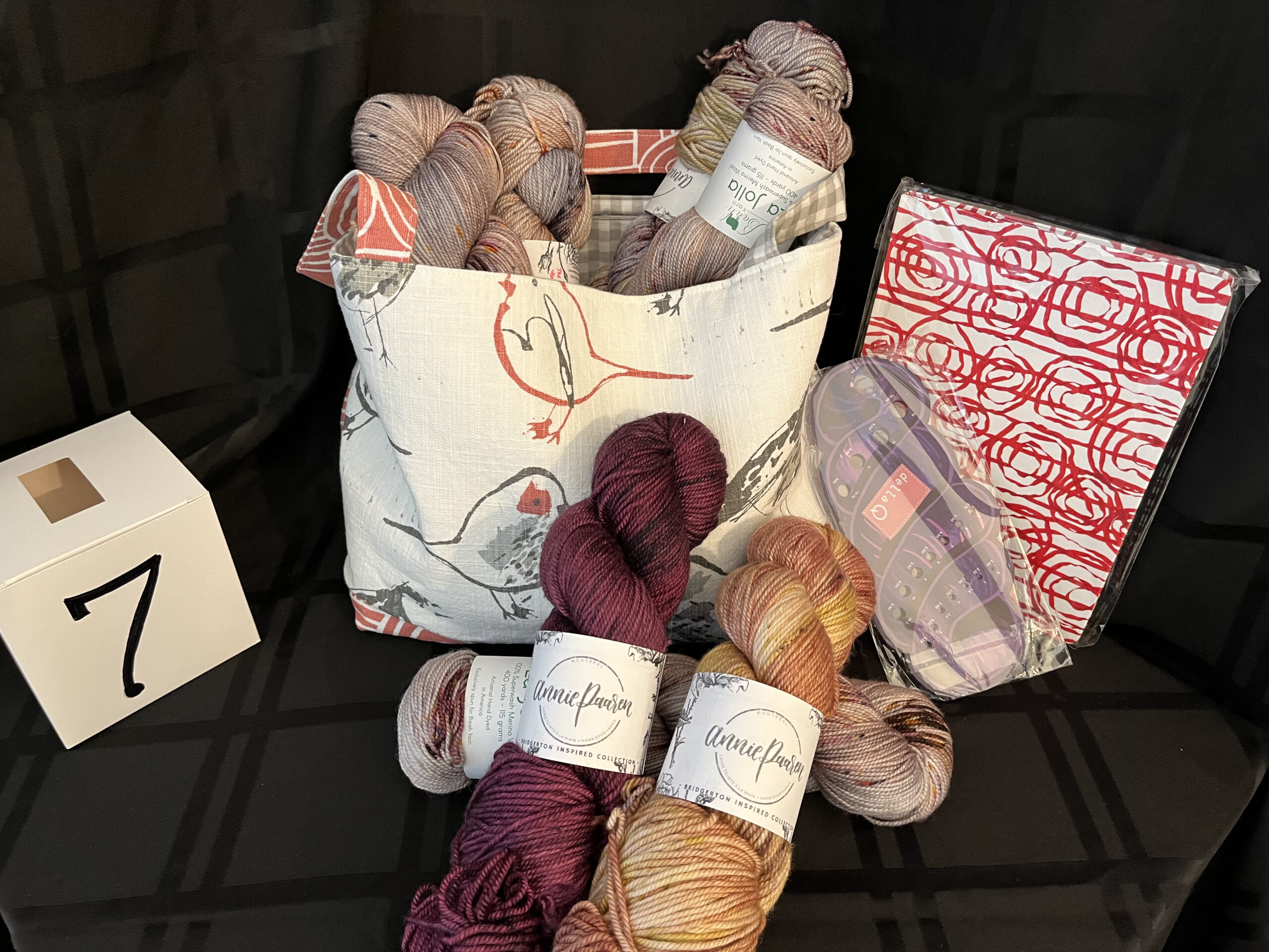 - Not Attending: Email Tania Marshall (Secretary@SanDiegoKnitters.com) after the October 28 (“November”) Guild Meeting with your name and the number of the basket where you’d like your free ticket entered.
